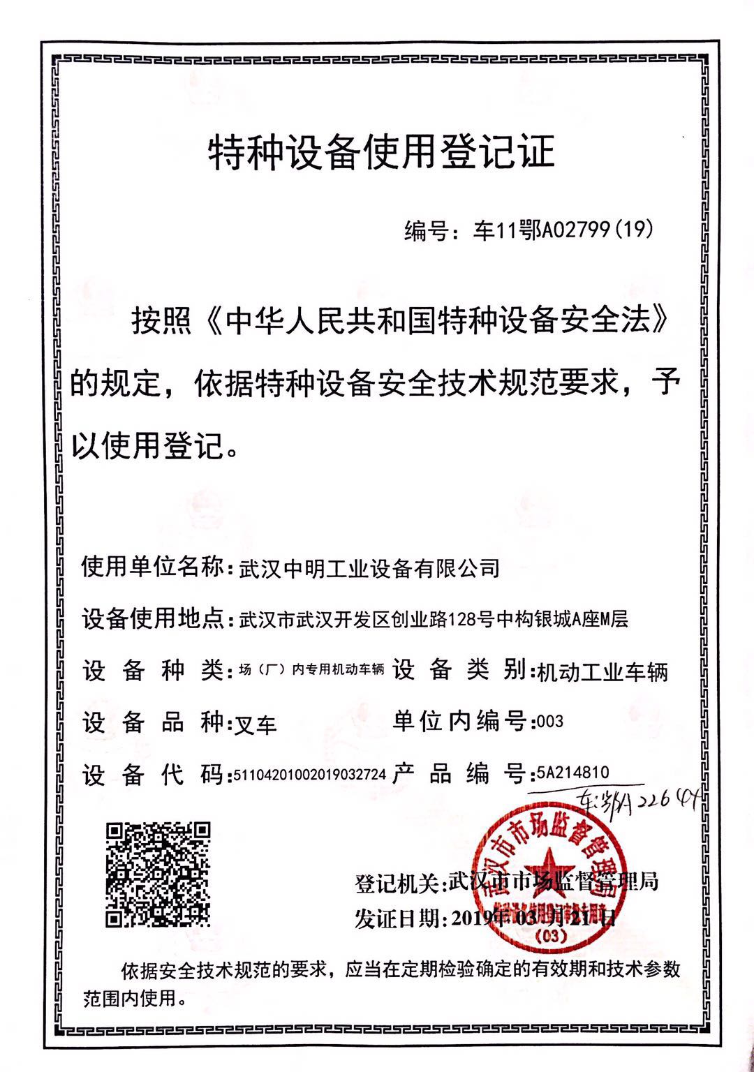 5、叉車制造許可證(進(jìn)口設(shè)備無(wú)此項(xiàng)資料要求)