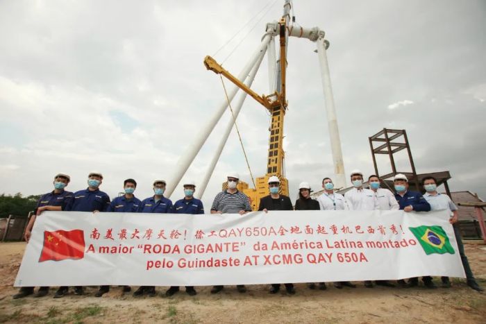 中國(guó)出口南美最大全地面起重機(jī)徐工QAY650A首吊拉丁美洲最大摩天輪